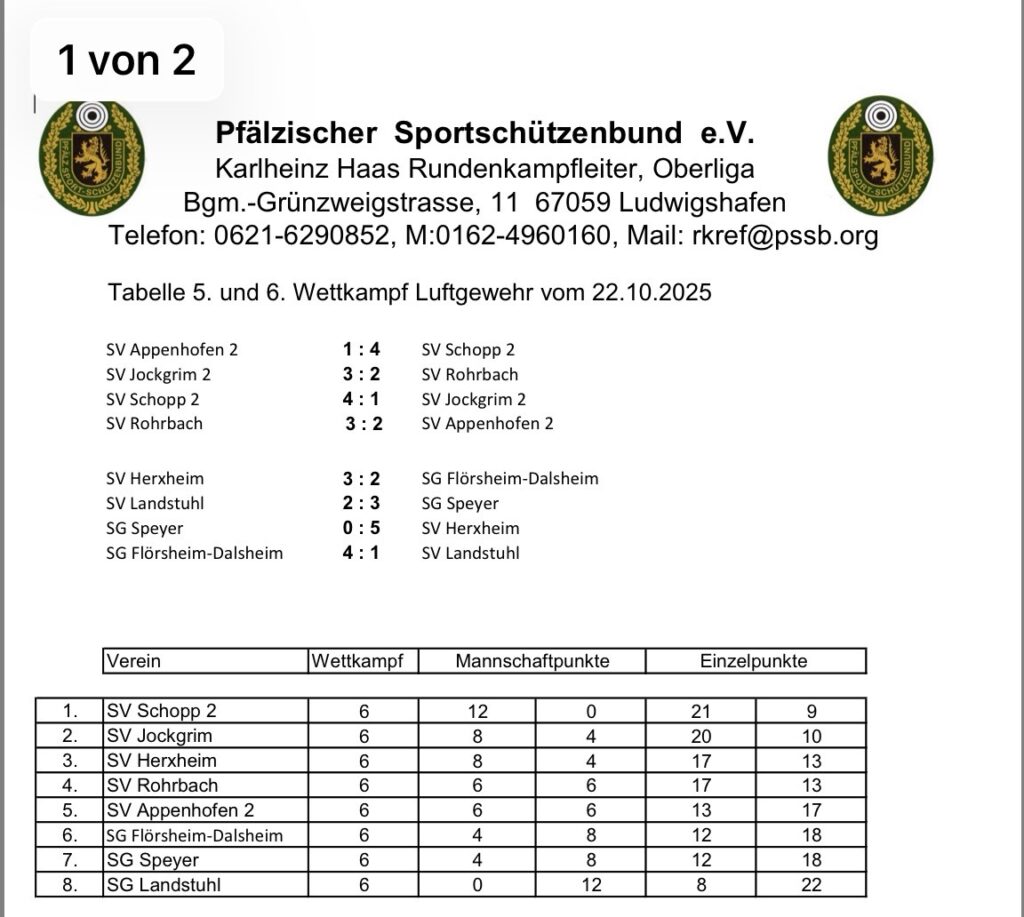 Nach 6 von 7 Wettkämpfen bedeutet das Platz 5 für unsere 2. Mannschaft. Der Kampf um den sicheren Klassenerhalt geht weiter. Verliert unser Team den letzten Wettkampf und die SG Speyer gewinnt ihr Duell gegen Jockgrim II droht der Abrutsch auf einen Relegationsplatz.